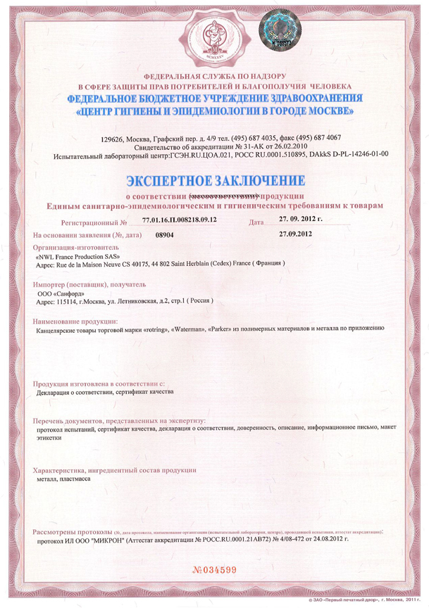 Сертификаты - Официальный дилер PARKER в Северске