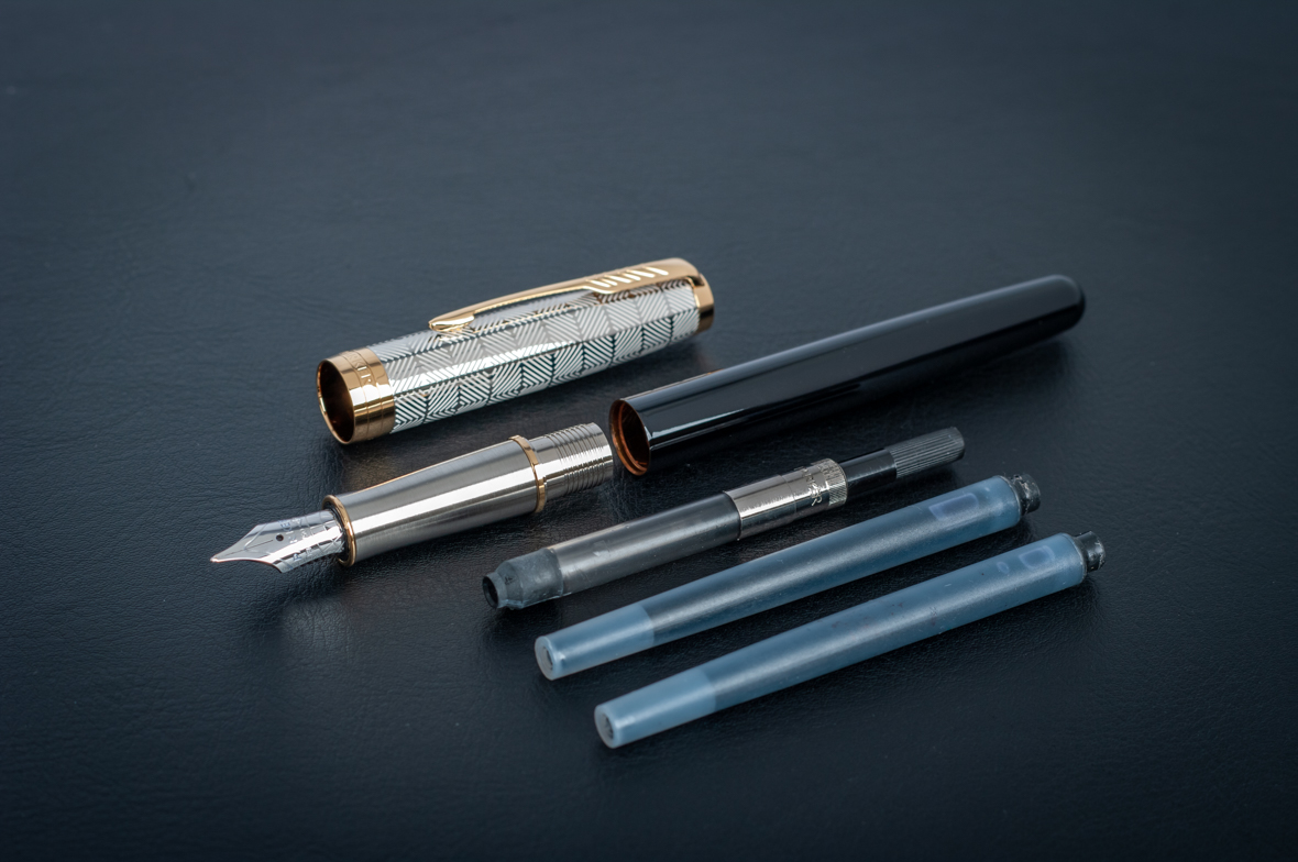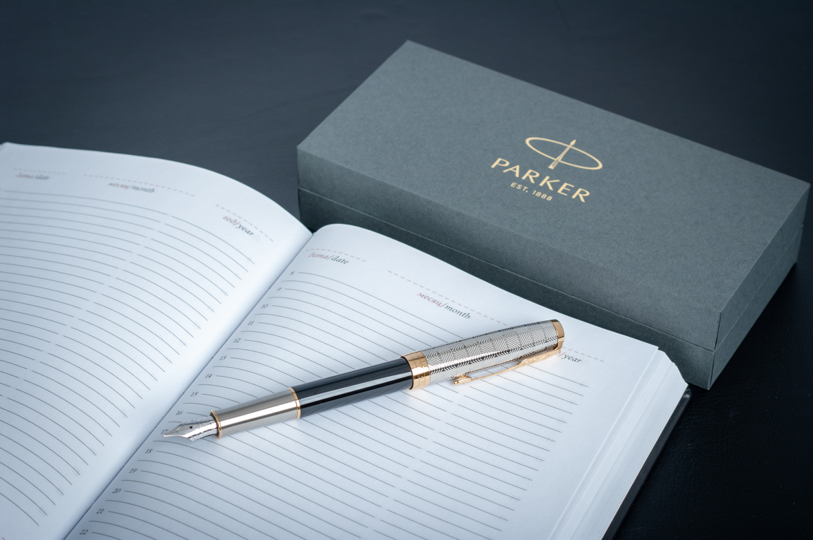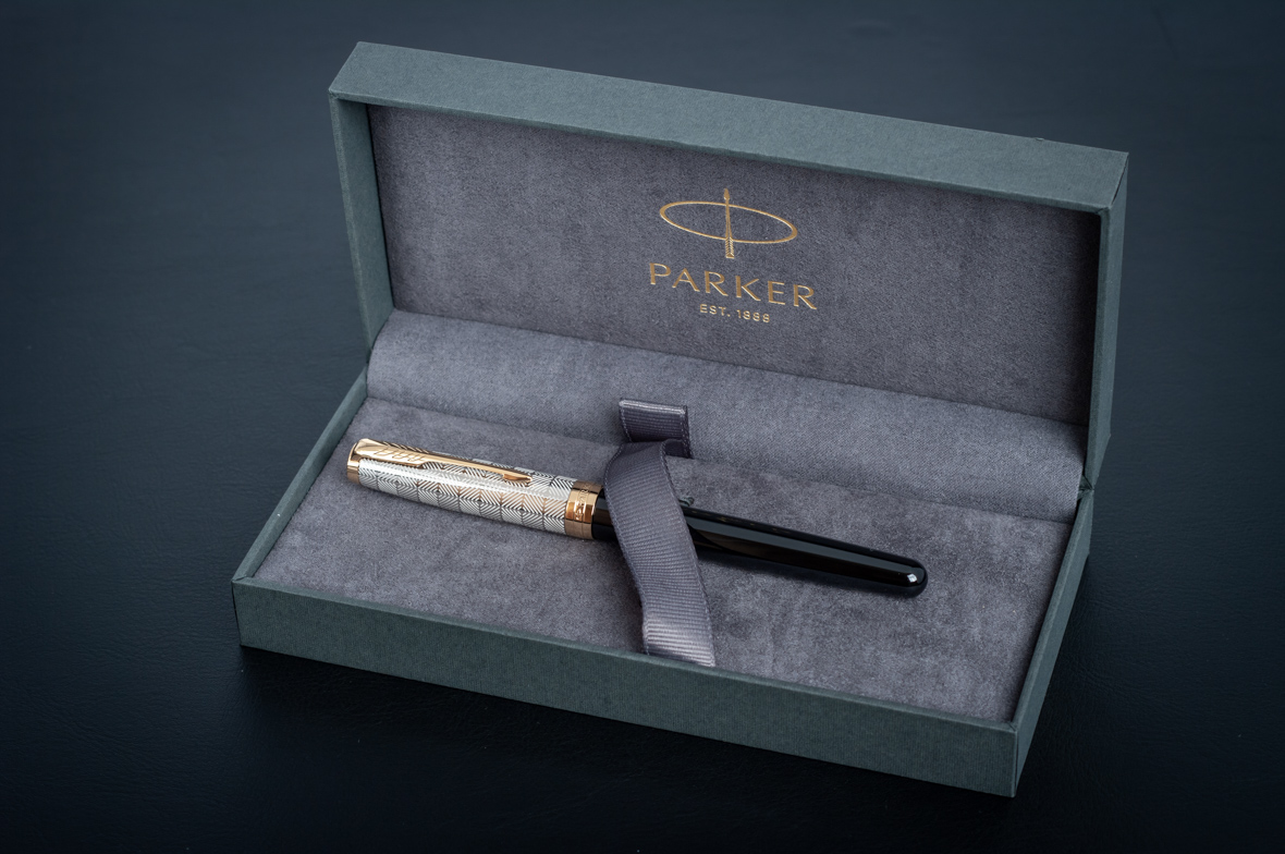 Ручка перьевая Parker Sonnet Premium Metal Black GT M от официального дилера Parker в Северске. Вы можете дополнительно заказать гравировку, которая подчеркнет Вашу оригинальность и придаст памятность статусному подарку. Все ручки Паркер поставляются в фирменном футляре.