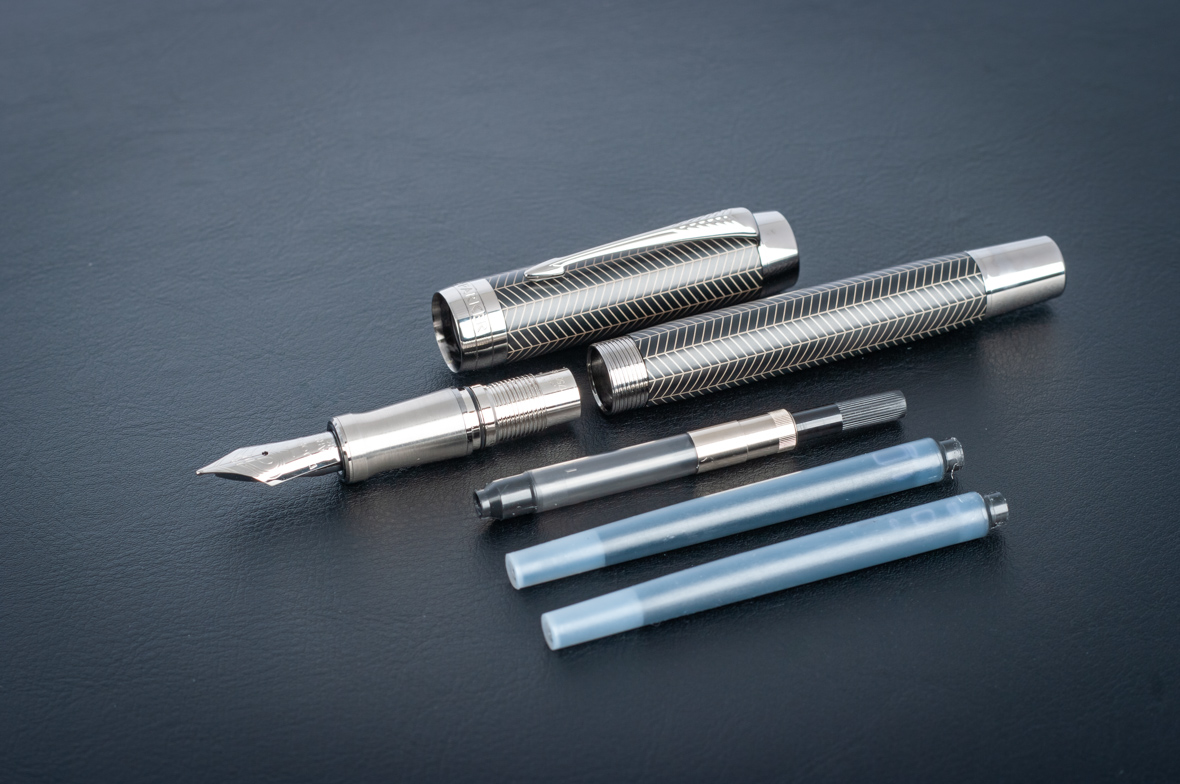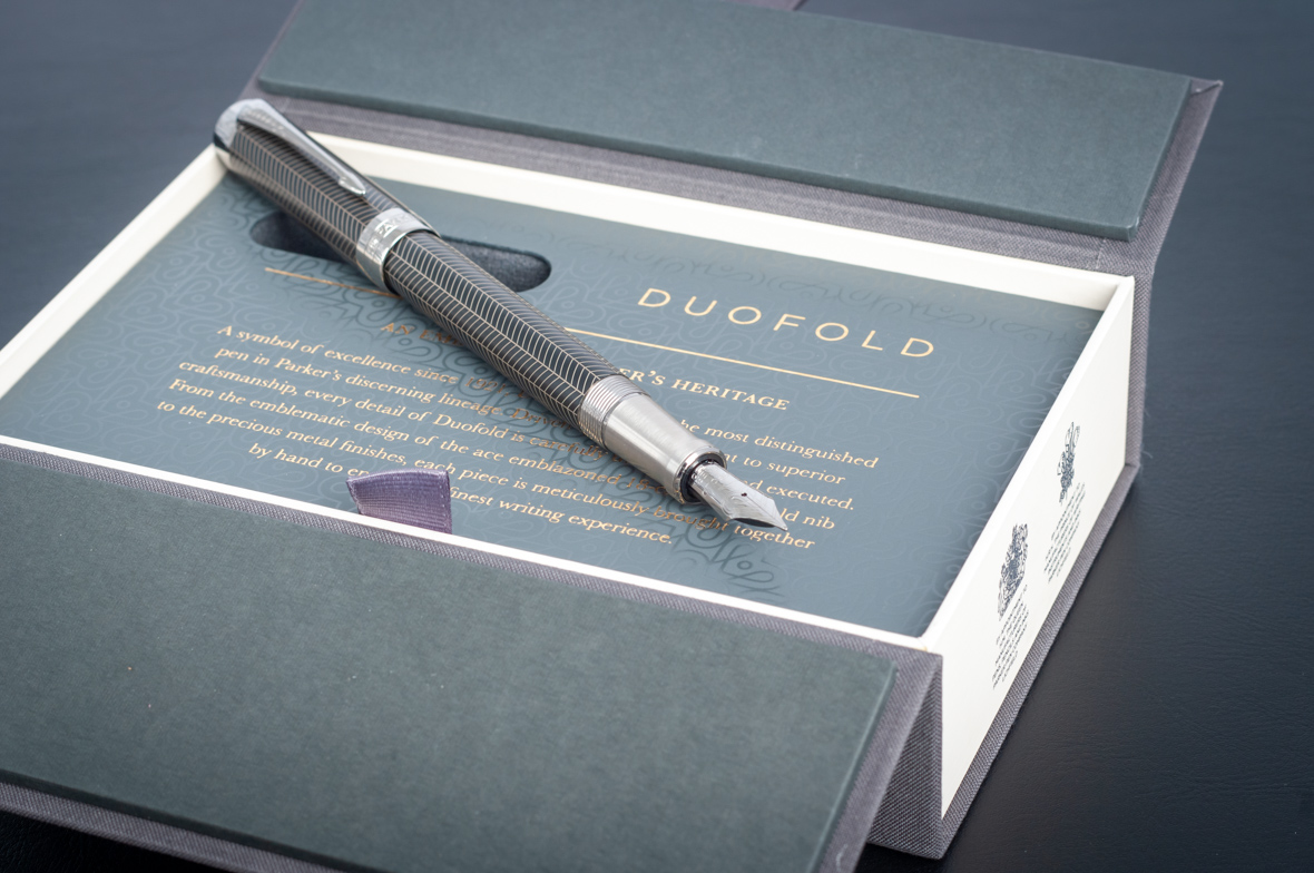 Перьевая ручка Parker Duofold Prestige Centennial Black Chevron CT от официального дилера Parker в Северске. Вы можете дополнительно заказать гравировку, которая подчеркнет Вашу оригинальность и придаст памятность статусному подарку. Все ручки Паркер поставляются в фирменном футляре.